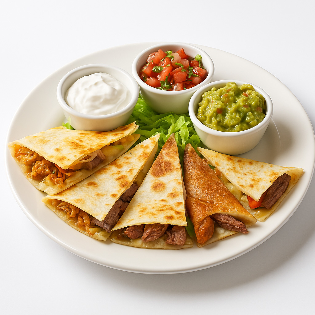 Poblano peppers, grilled onions [[&}] mixed cheese with lettuce, pico, sour cream, [[&}] fresh salsa. Chicken, Steak or Combo